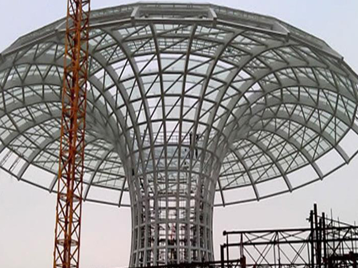 二、球形网架结构因其结构新颖,受力合理,自重轻、用钢量低等优点。如大型体育场馆球形韶山螺栓球网架、公共场馆球形网架、电厂韶山螺栓球网架、水泥工业球形网架、仓储物流球形网架、韶山干煤棚工业球形网架、韶山收费站韶山加油站球形网架、展览中心、影剧院、商场、航站楼、候车厅、工厂韶山车间、仓库、电视塔等球形螺栓球节点网架。国内球形网架结构主要分为:韶山焊接球节点网架及螺栓球节点网架两种。螺栓球节点网架其构件工厂内加工量较大,现场安装便捷,适用于现场工期紧,韶山施工条件、用电量受制约,网架形状复杂、韶山杆件定位困难的异形结构。螺栓球节点球形网架系统基本由韶山杆件、螺栓球、支撑支座等组成。按照节点形式可分为交叉韶山桁架体系、四角锥体系、三角锥体系等。支撑方式多为固定支座支撑。对于大面积、大跨度及有特殊受力或伸缩要求的网架结构可采用橡胶支座、滑移支座、球铰支座等支撑形式,以满足结构自身的受力稳定、均衡,便于内力释放等设计要求。